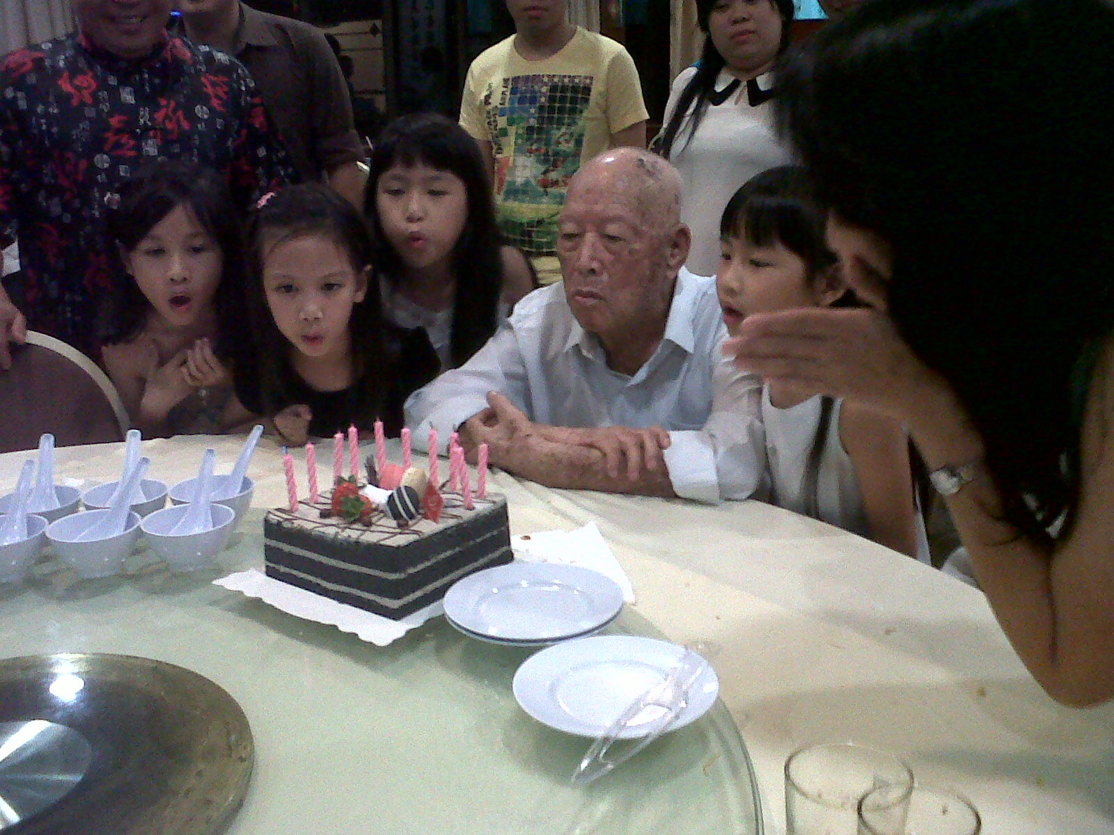 My super grandpa's amazing 100th birthday (!!!) and all his great-grand/ grandkids blowing his candles for him hahahah!